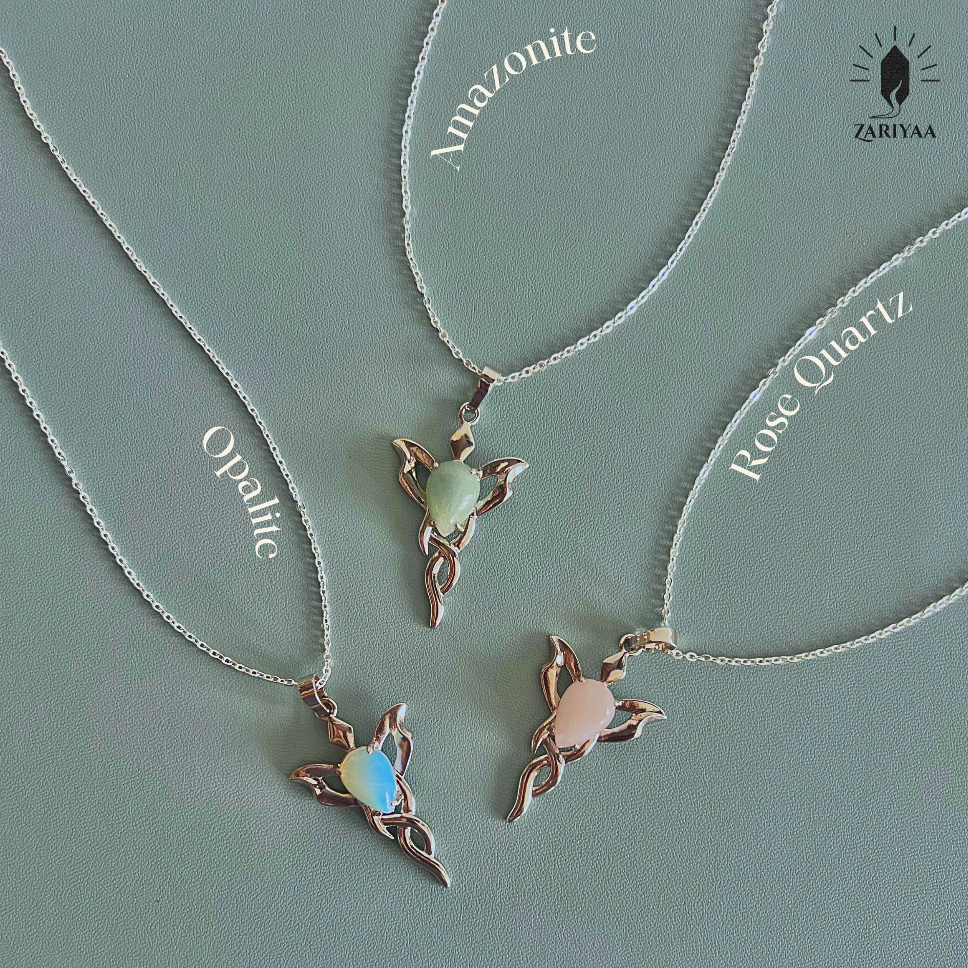 - Centre stone: Rose Quartz (natural)