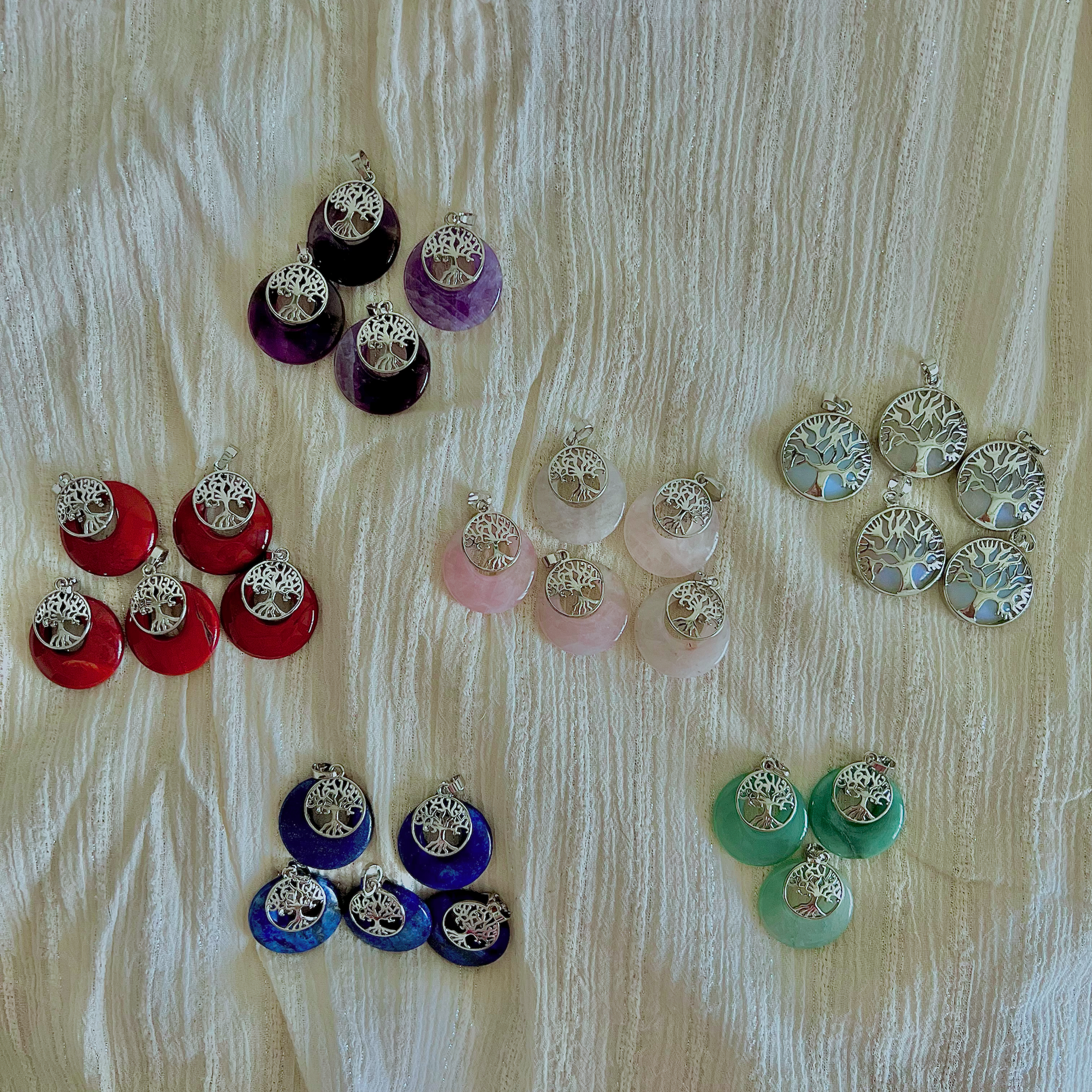 This pendant pairs the sacred Tree of Life with a smooth donut-shaped crystal to create a piece that’s as meaningful as it is beautiful.