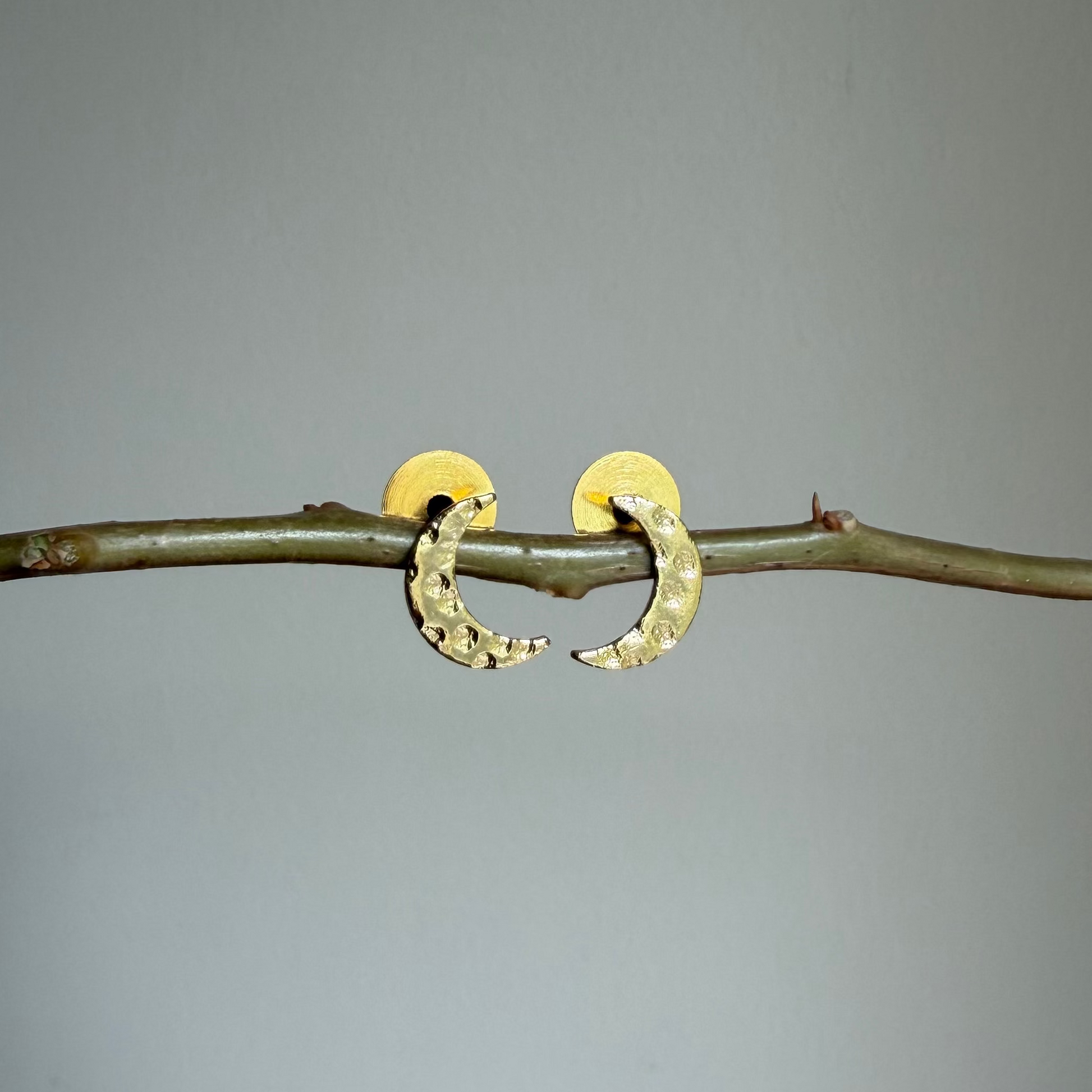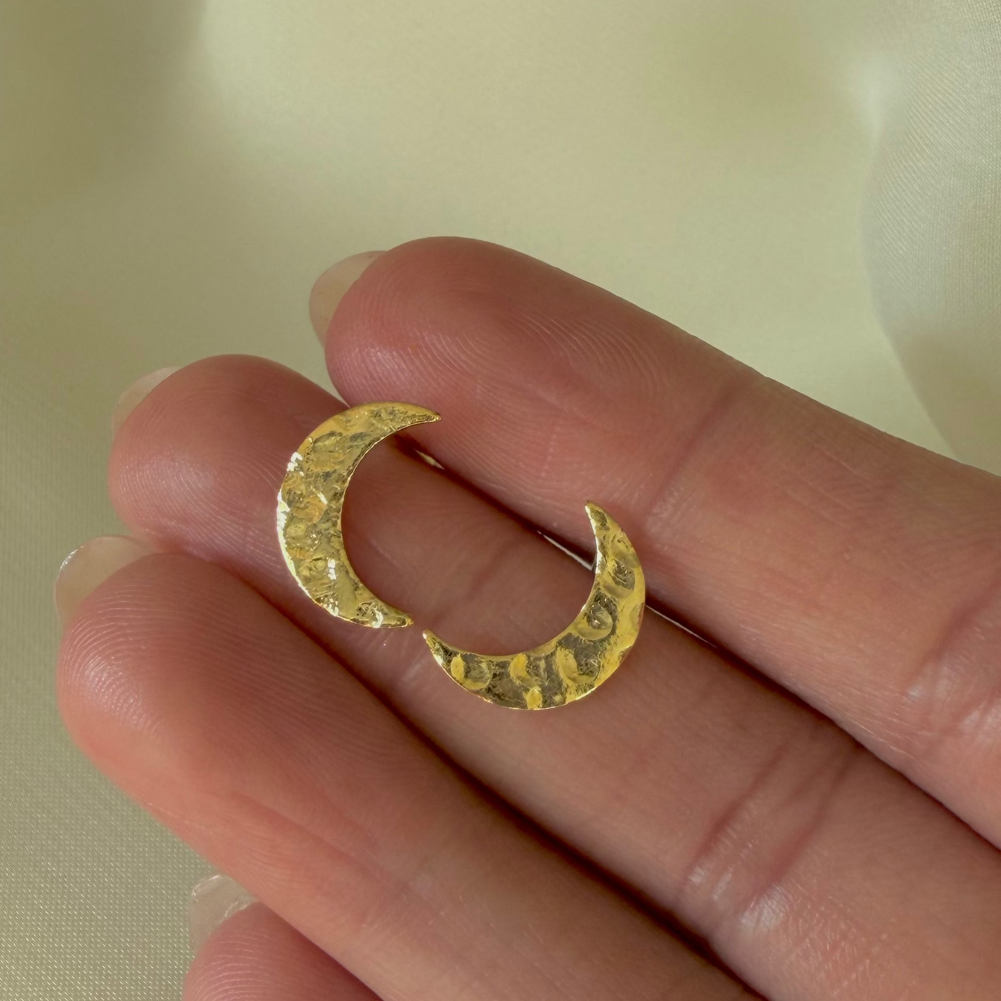 Minimal crescent moon studs crafted in a soft, hammered finish. Inspired by quiet moonlight and everyday elegance, the Chandni Crescent Studs are effortless, timeless, and endlessly wearable — the kind of pair you never take off.