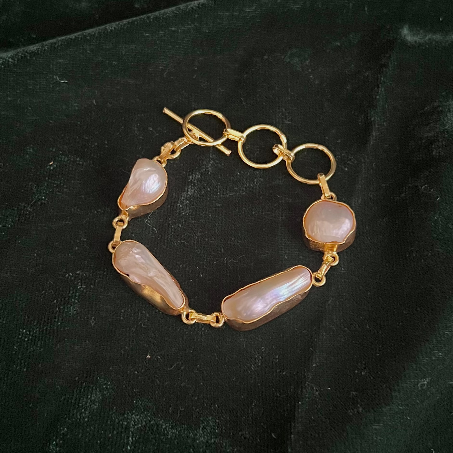 Refined and timeless — the Baroque Cloud Bracelet features a natural Baroque pearls on a delicate 18k gold-plated brass chain. Its minimal silhouette and organic lustre make it a versatile piece that adds quiet sophistication to everyday wear.