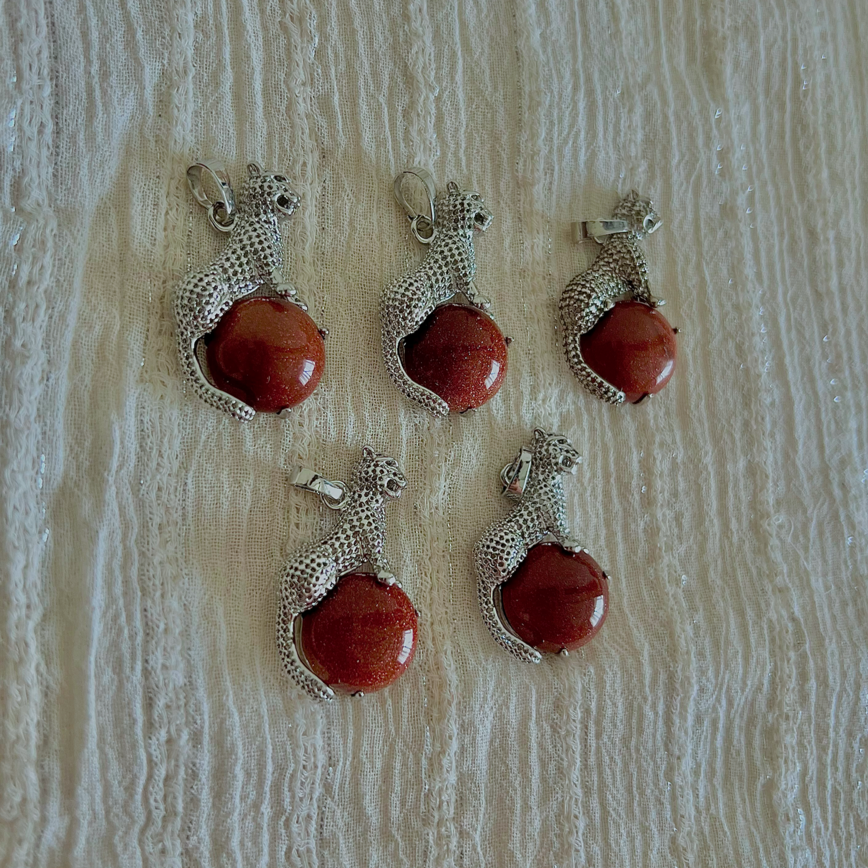 This striking pendant features a sculpted panther wrapped protectively around a polished crystal sphere.