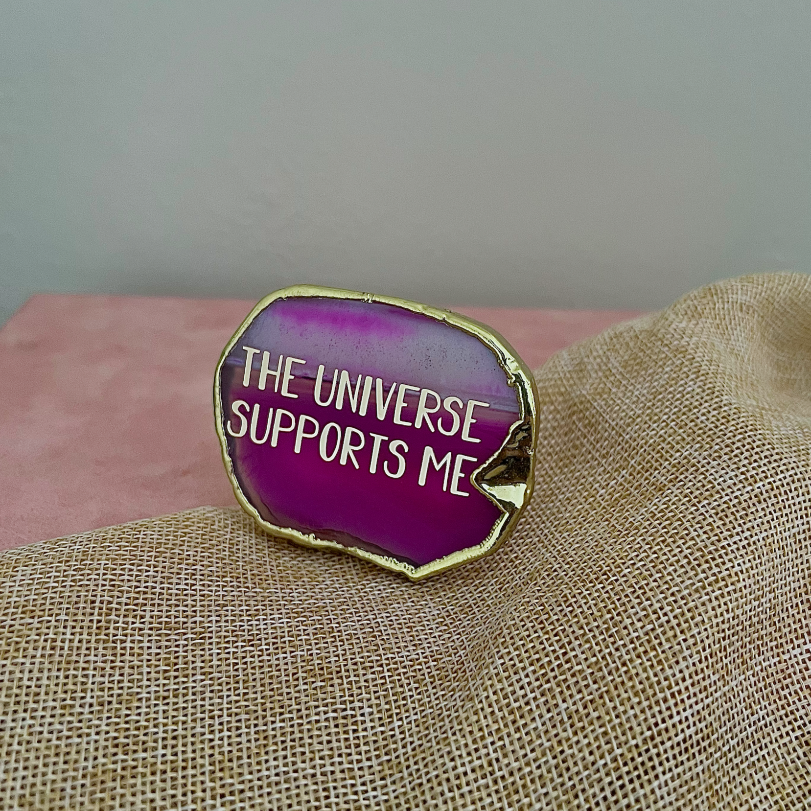 ✨ Comes with a stick-on strip at the bottom so you can place it on your office desk, bed-side table, or car dashboard — or simply prop it up with the attached stand and let it hold space wherever you need grounding.